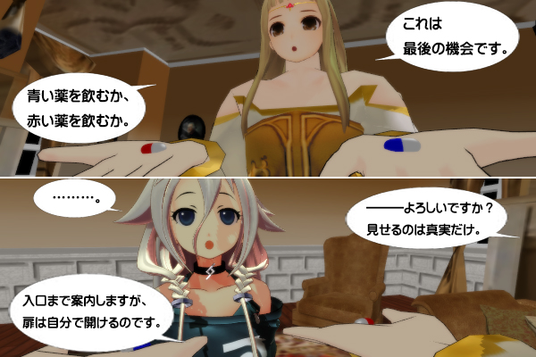 ![]() …どうなんでしょうね??管理人には全く予想ができません。そしてこの話は、ガープスのみならずTRPG、ひいては人類社会のあり方とも直結します。 …え?何を言ってるのかって? 順を追って話しますね。 ●黎明期(10~20年前) TL7初期の情報化社会黎明期 ソードワールドやガープスが盛んだった時期、インターネットは普及してませんでした。コンシューマゲームは既にありましたが、メーカーが一方的に世界観やキャラクターを提供するだけで、ユーザー側が内容を自由に改変できる部分はほとんどありませんでした。 一方、TRPGは設定からパラメータまで、ユーザーが自由に改変できました。なので、ゲームのRPGとリアルのTRPGは完全に別ジャンルとして、すみ分けができていました。 ●現代 TL7の情報化社会 しかし、それから数十年立った現在。 インターネットで各個人が繋がり、TRPGがしたいならオンラインゲームをすれば事足りる部分が大きくなりました。最近のオンラインゲームはキャラクターの外見も自由に決められる部分が多く、会話はまだチャットシステムに頼っていますが、ボイス・チェンジャーの技術も徐々に進歩しており、おそらく数年後にはオッサンユーザが幼女キャラのカワイイ声でしゃべるとか、おばさんユーザがイケメンボイスでしゃべるのが当たり前の環境になっているでしょう。 つまり、TRPGの「自分以外のキャラを演じる部分」が、完全にコンピュータによる自動化に成功します。こうなるともう、自由が利かないのは「世界観設定」「シナリオ構築」の部分だけとなります。これは現在、ゲームクリエイターと呼ばれるプロの技術者によって行われています。 何の技術も持たない個人がそれをやりたい場合、TRPGを使うことで他人にサービスを提供する事が可能です。 ●近未来(50~100年後) TL8のAI管理社会 少しだけ未来を描いたアニメ作品に「ソードアート・オンライン(略してSAO)」というものがあり、SAOの世界ではユーザーの意識をネット上にダイブさせ、リアルの感覚を遮断するという、ある意味恐ろしい技術が確立しています。 この世界では、最初の事件でばら撒かれた「ザ・シード」と呼ばれるフリーソフトにより、ネトゲの世界観設定の部分も1ユーザーができるようになっており、クリエイターサイドに回りたいユーザが1から世界を構築する事が可能です。世界のあちこちで、各ユーザーが構築した独特の世界が展開されており、プレイヤー側のユーザがそれぞれ好きな世界で冒険を楽しめるようになっています。同時に、これらを利用した高度なサイバー犯罪や政府レベルの陰謀が社会問題となりつつあります。 ただし、「ザ・シード」がばら撒かれたのはアニメ第1期の終了時で「つい最近」の出来事であり、今のところ「世界観構築」に関しては完全手探りの状態です。また、この世界も基本となるのはリアルであり、ネット上の仮想空間はあくまで「娯楽」の域を出ません。リアルの素性や性別まではさすがに変えられないため、「別キャラを演じる」という部分はまだ残っています。 ●次世代(200年後前後?) TL9の電脳社会 さらに進化した世界として、近未来を描いたSF作品「攻殻機動隊」があります。 この世界では、上記のSAOの世界と同じく、個人の意識を完全にネット上にダイビングさせ、リアルの感覚を遮断します(というか、攻殻機動隊の世界設定を一部借りたのがSAOで、こちらの作品がネットダイブ概念の先駆けとなります)。 ネット上でのアバター要素は完全に自由に決められ、別の人格を演じようと思えば簡単にできますし、ユーザーが義体を乗り換えればリアルでの性別すら誤魔化せるようになってます(原作でバト-が美女の義体に乗り込んでいる95歳の男性(ネカマ)相手に本気の恋愛をしているのが妙にリアルで笑えました(笑))。こうなるともうリアルとネットの境界さえ曖昧になり、ネット上の自分=リアルの自分という状態に限りなく近づきます。 この世界には「スターバト・マーテル」と呼ばれるネットゲームが存在し、そこでは様々な世界を舞台とした冒険を提供します。もはや現実を区別がつかないほどリアルな画像描写が可能な仮想世界であり、各種身体感覚も脳に直接信号を送って味わえるため、完全にその世界の住人になりきれます。 人生って何なのか?って考えさせられるレベルですね。 ●遠い未来(500年後以上?) TL10の支配種交代期 この世界観をさらにディストピアな方向に推し進めたのが、映画「マトリックス」の世界です。こちらは生まれた時からリアルの身体は培養層の中で隔離管理されており、人々はネット上の仮想世界を「現実」として生きています。自分がネトゲの中にいる事すら気づいてません。 …ここまでくるともう、人類は星の寿命が来る頃には一緒に絶滅するしかなく(リアルでの技術開発を全く進めてないため、宇宙に進出して滅亡を回避する事もかないません)、存在している間はユートピアかもしれませんが、客観的に見ると